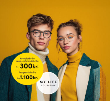 Med vores MY LIFE Collection kan du få dine nye briller inklusiv glas fra kun 300 kr* og progressive briller fra kun 1.100 kr.* Vælg mellem over 100 mærkestel for at finde et par, der fremhæver din personlighed.