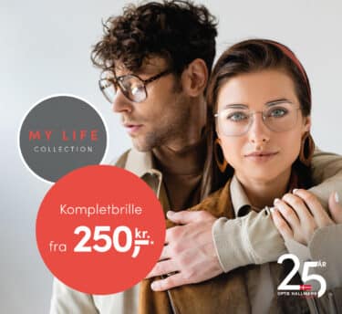 Med vores MY LIFE Collection kan du få dine nye briller inklusiv glas fra kun 250 kr.* Vælg mellem over 100 mærkestel for at finde et par, der fremhæver din personlighed.