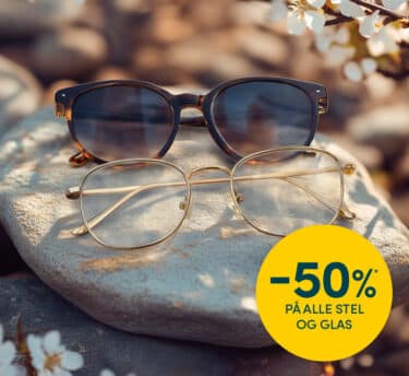 I en begrænset periode kan du få 50% rabat på alle stel og glas* (undtagen mærkerne Chanel, Dior, Gucci, Lindberg, Ørgreen, Lunor, Davidoff, Prada) under vores store forårsudsalg!* Få stilfulde briller, højkvalitetsglas og trendy solbriller med din styrke til halv pris!
